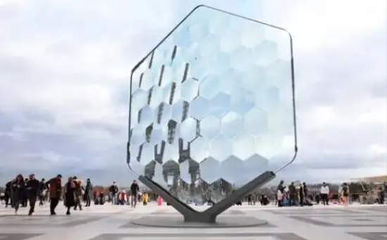不锈钢的镜面效果能够反射周围的环境和光线,使装置与周围环境产生互动,营造出一种梦幻般的视觉效果。